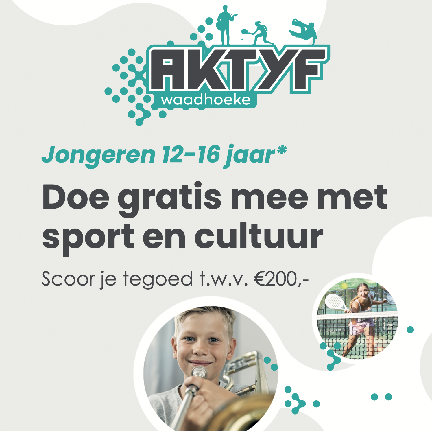 De gemeente Waadhoeke en Sport Fryslân starten vanaf 1 juni 2024 met het tweejarig project Gratis Aktyf in de Waadhoeke. Iedere inwoner van de Waadhoeke tussen de 12-16 jaar ontvangt een persoonlijke voucher t.w.v. €200,- waarmee ze kennis kunnen maken met sport en cultuur.